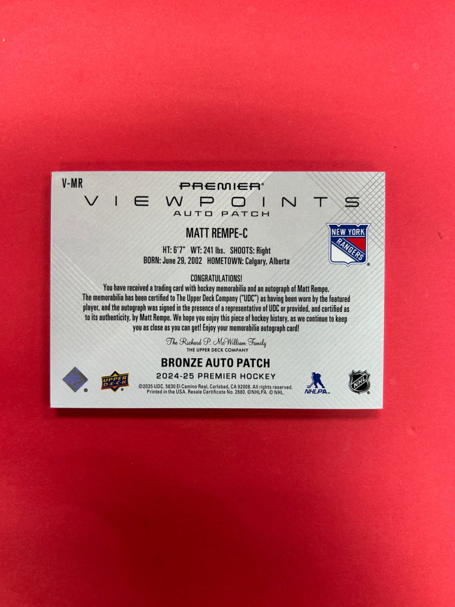 This is it! 2024-25 UPPER DECK PREMIER MATT REMPE VIEWPOINTS PATCH AUTO /99