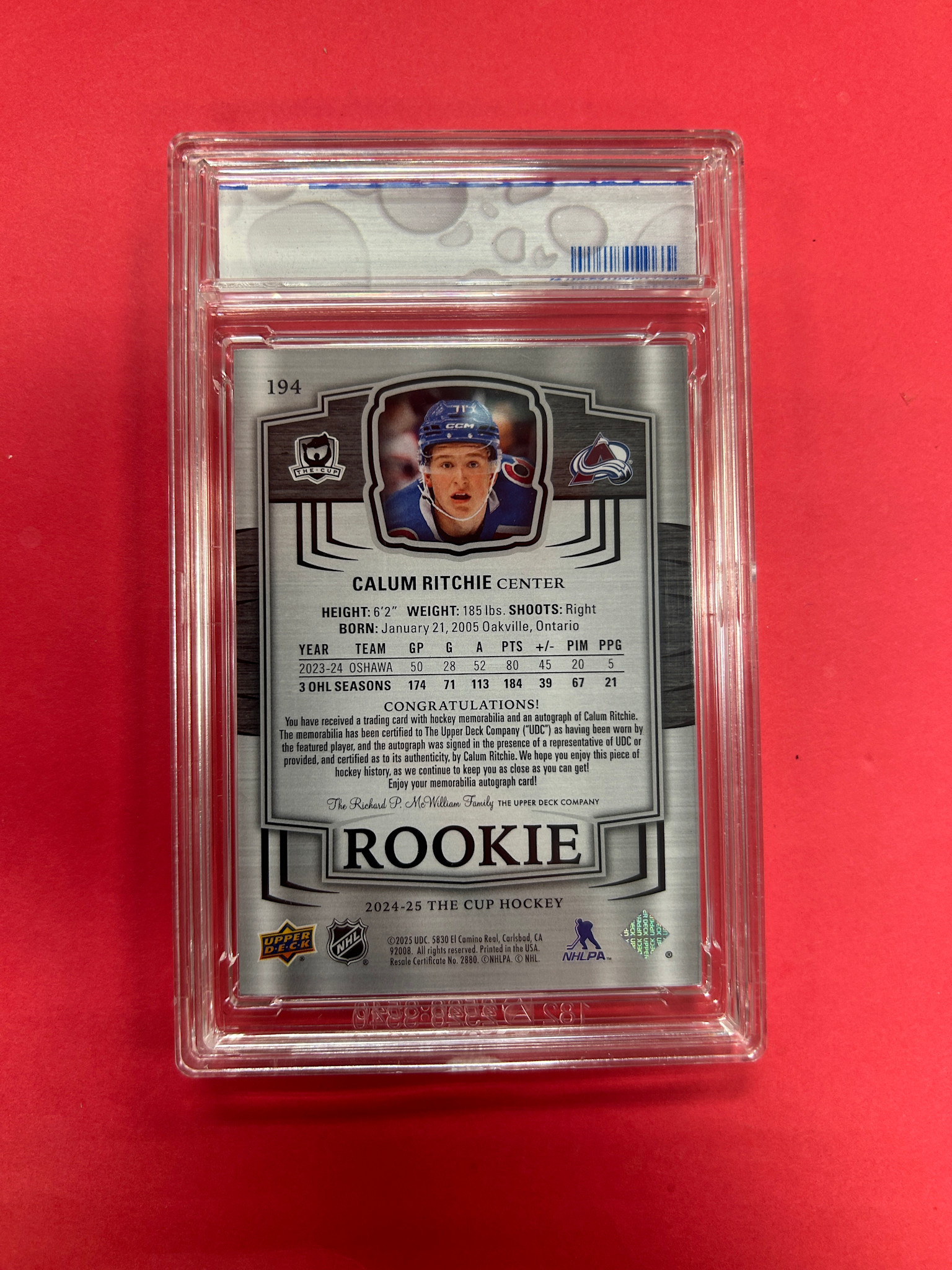 2024-25 UPPER DECK THE CUP CALUM RITCHIE ROOKIE AUTO PATCH /249