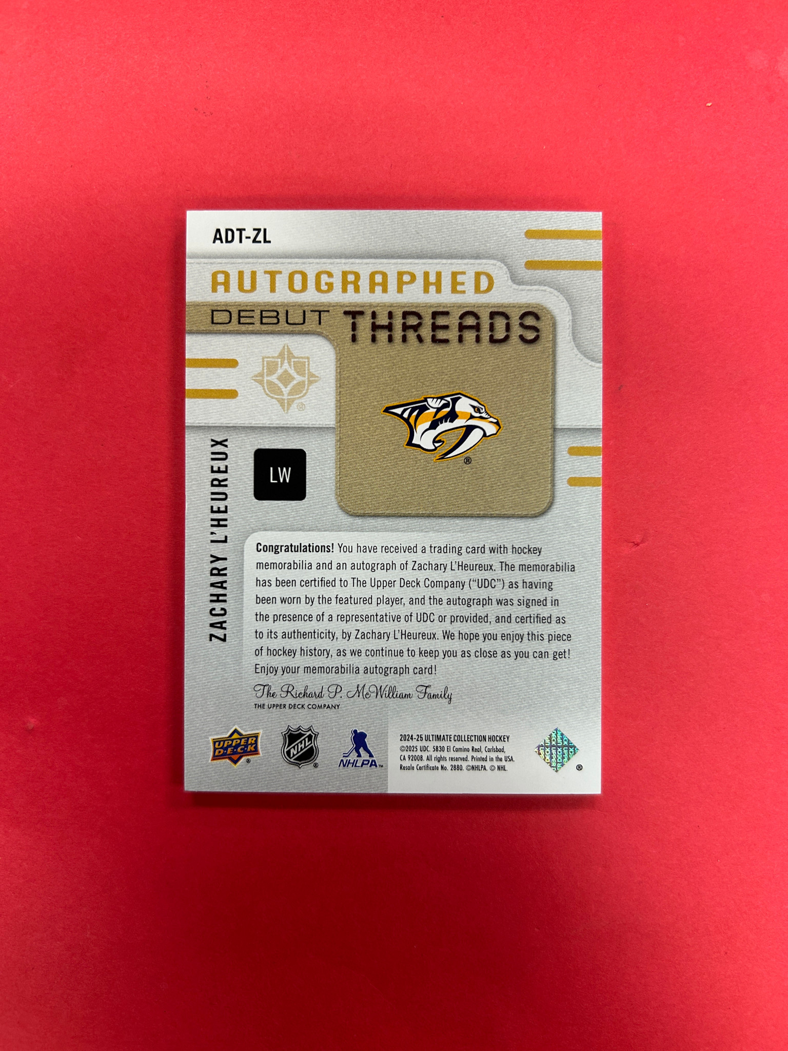 2024-25 UPPER DECK ULTIMATE ZACHARY L'HEUREUX AUTOGRAPHED DEBUT PATCHES /199