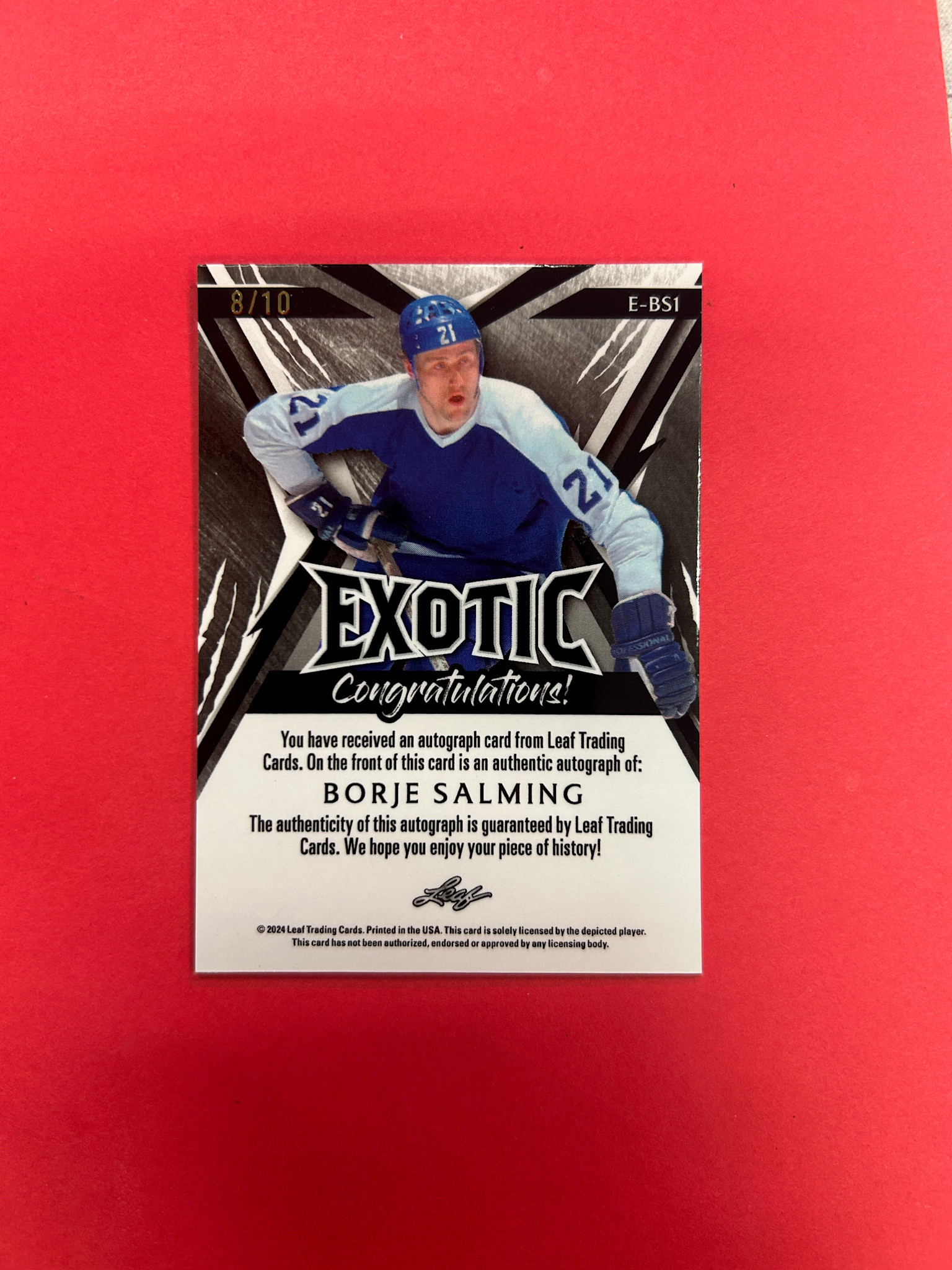 2024 LEAF EXOTIC BORJE SALMING TIGER STRIPE AUTOGRAPH /10