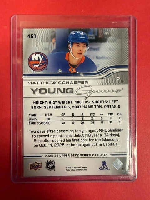 This is it! 2025-26 SERIES 2 YOUNG GUNS MATTHEW SCHAEFER #451
