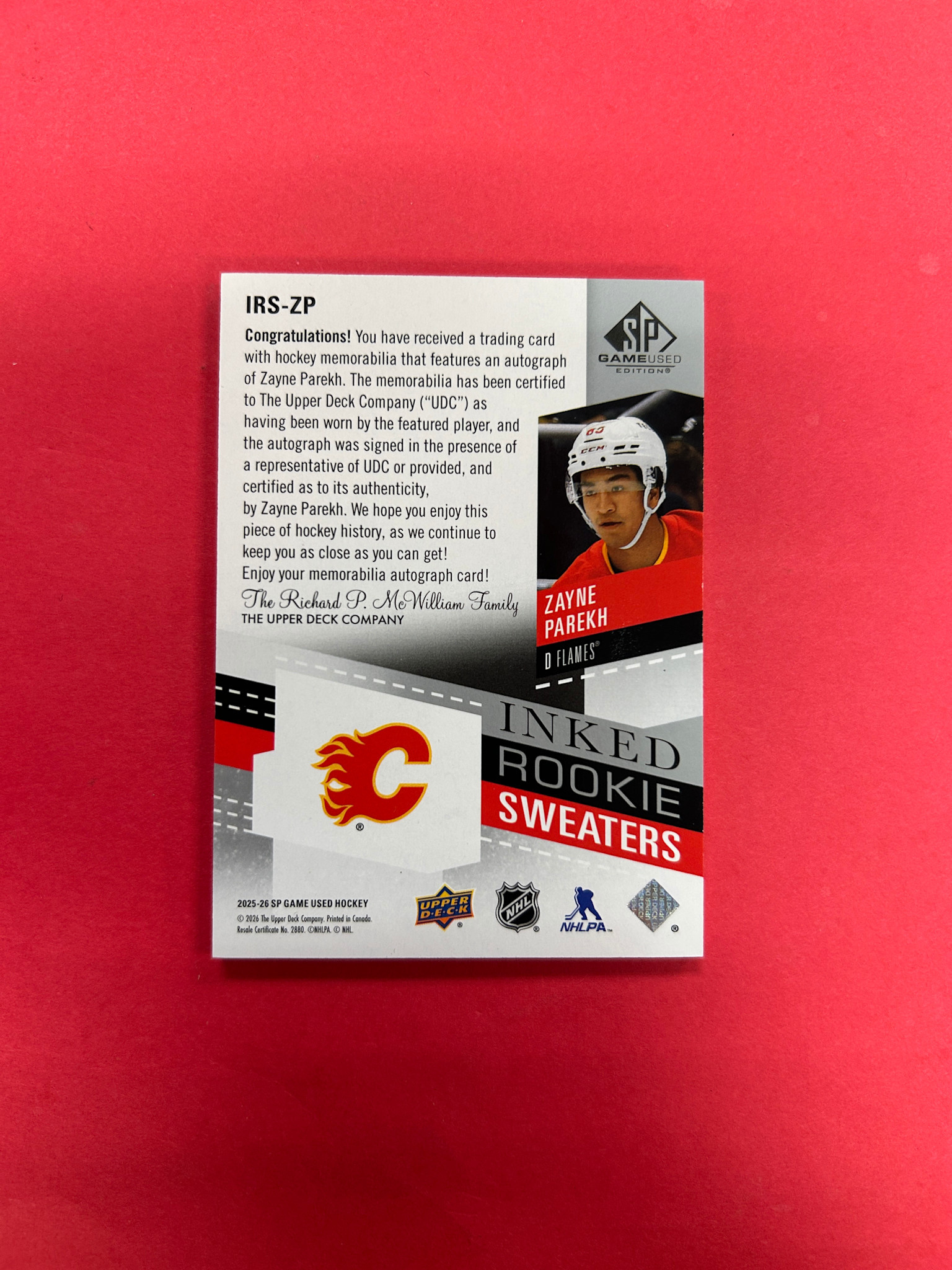 2025-26 SP GAME USED ZAYNE PAREKH INKED ROOKIE SWEATERS /99