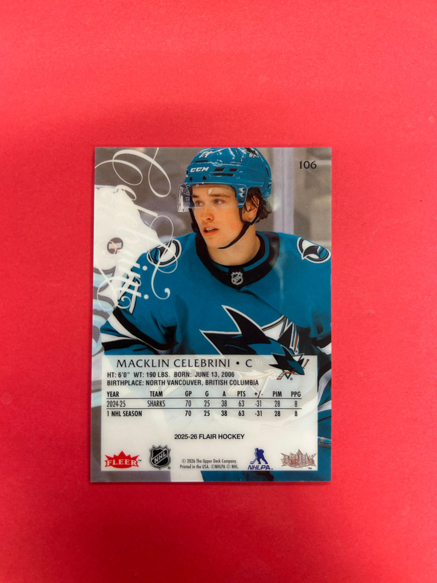 This is it! 2025-26 UPPER DECK FLAIR MACKLIN CELEBRINI BASE #105