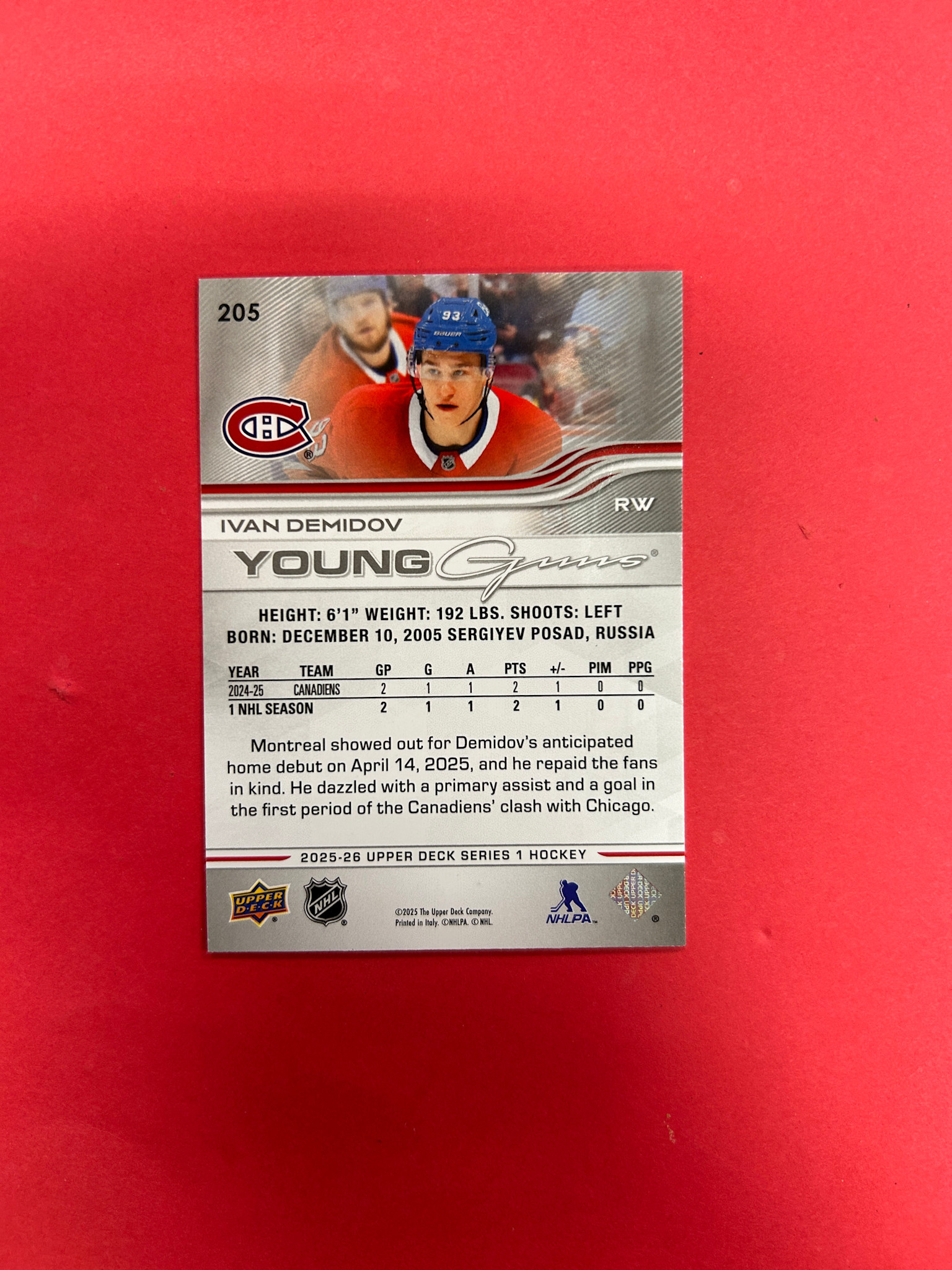 2025-26 UPPER DECK SERIES 1 IVAN DEMIDOV YOUNG GUNS NOT MINT