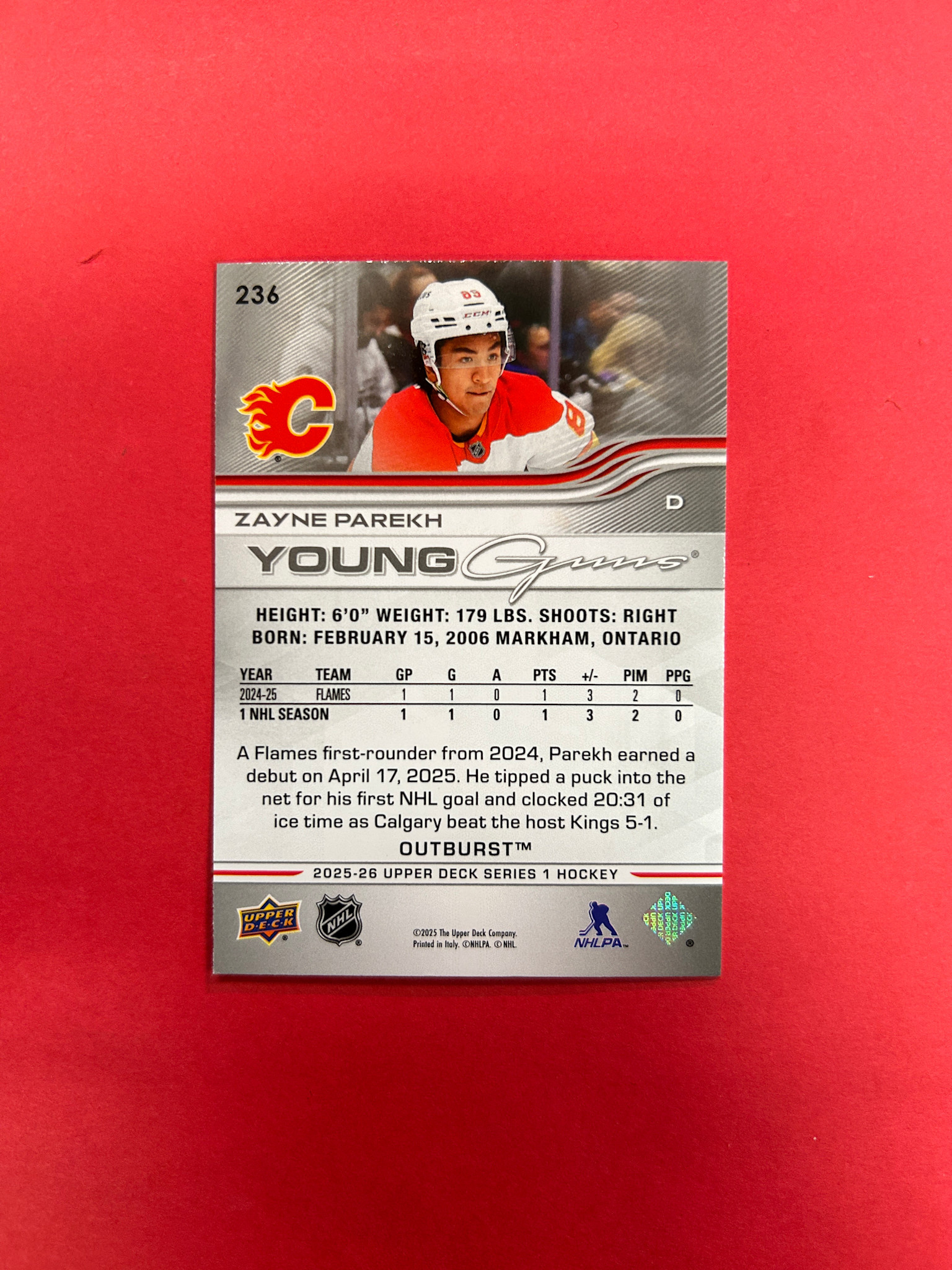 2025-26 UPPER DECK SERIES 1 ZAYNE PAREKH YOUNG GUNS OUTBURST