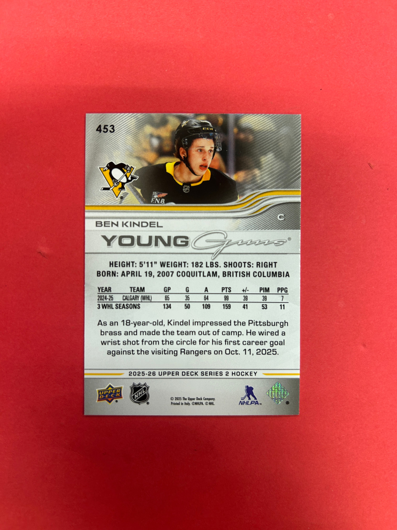 2025-26 UPPER DECK SERIES 2 BEN KINDEL YOUNG GUNS