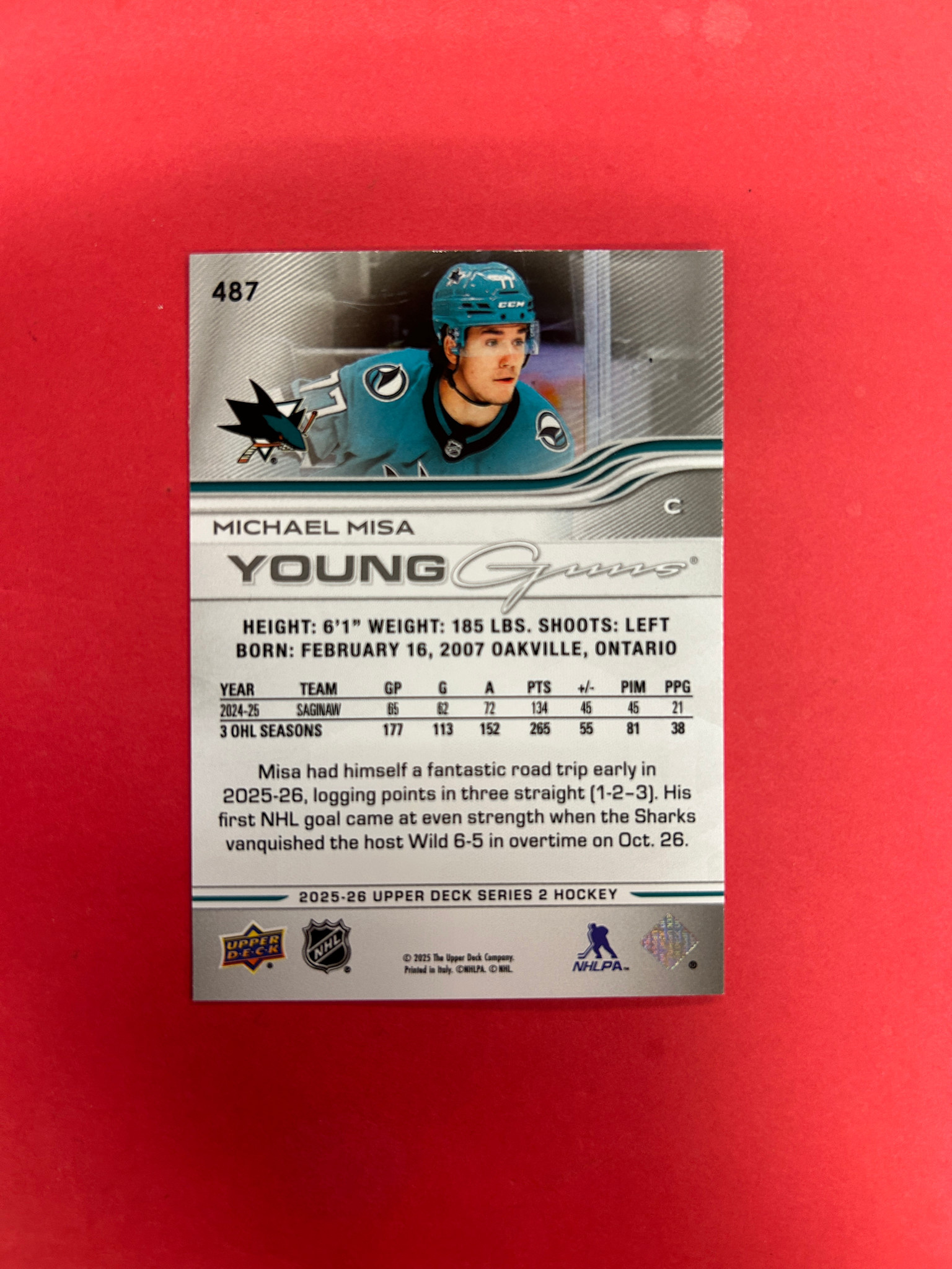 2025-26 UPPER DECK SERIES 2 MICHAEL MISA YOUNG GUNS