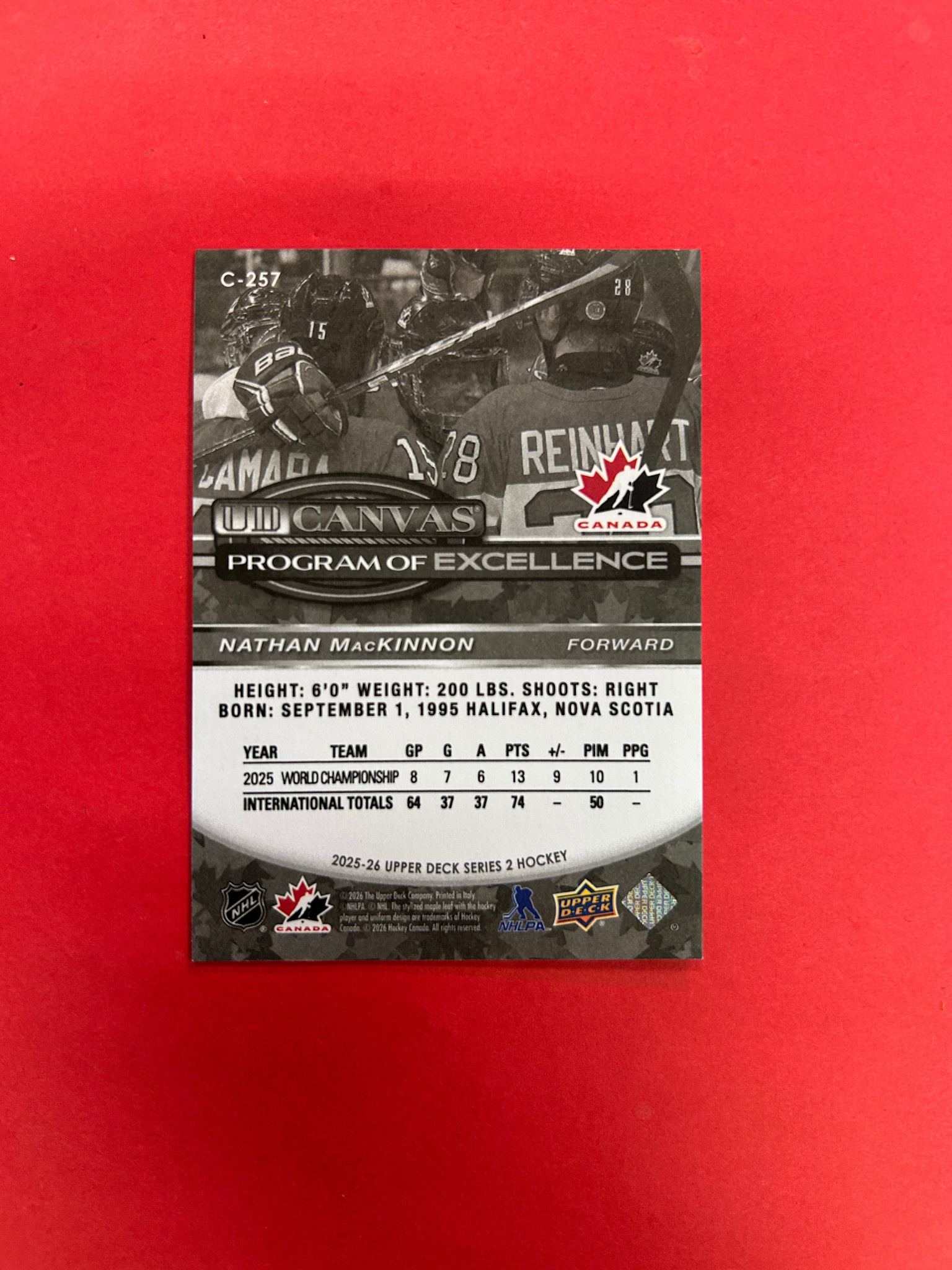 This is it! 2025-26 UPPER DECK SERIES 2 NATHAN MACKINNON PROGRAM OF EXCELLENCE CANVAS BLACK AND WHITE
