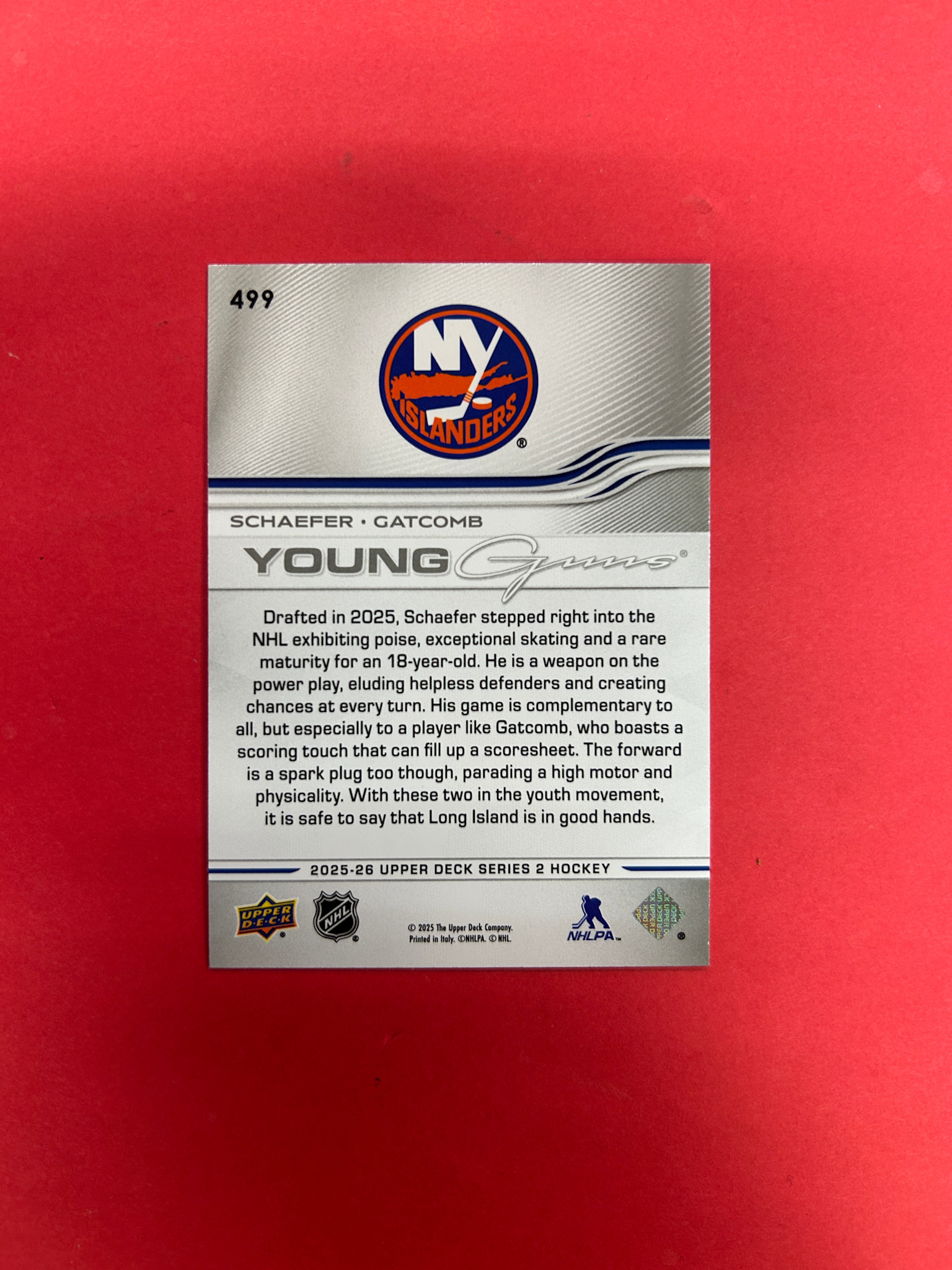 This is it! 2025-26 UPPER DECK SERIES 2 SCHAEFER / GATCOMB YOUNG GUNS TEAMATES HIGH GLOSS 10/10