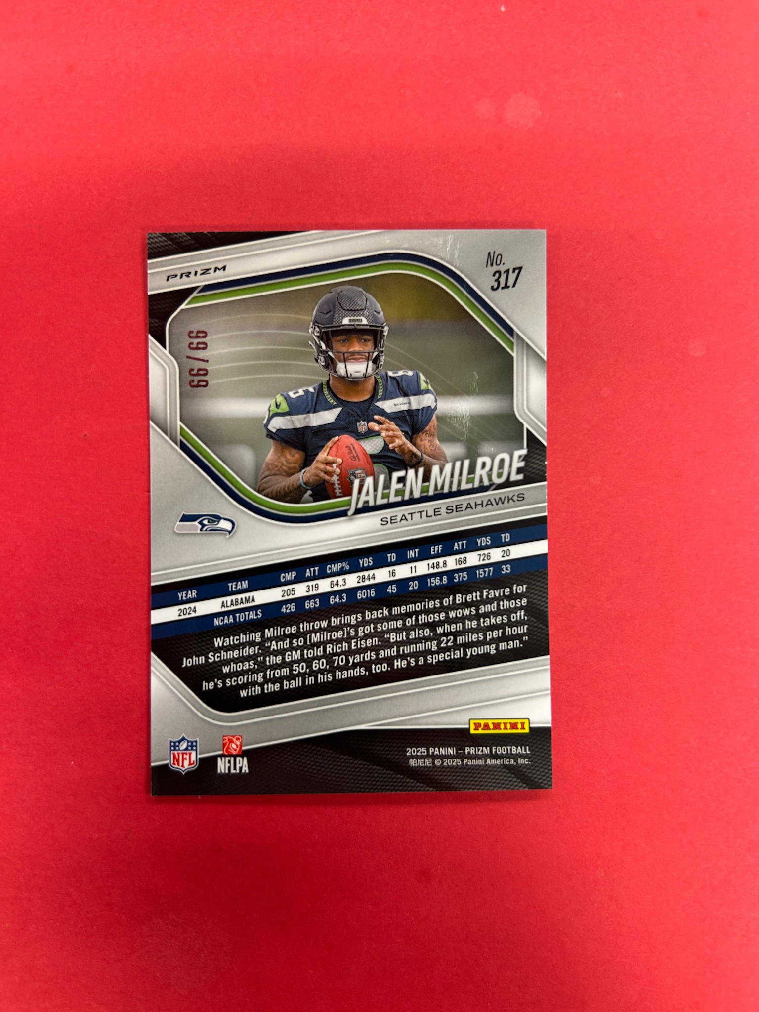 This is it! 2025 PANINI PRIZM JALEN MILROE RED RISCO ROOKIE /99