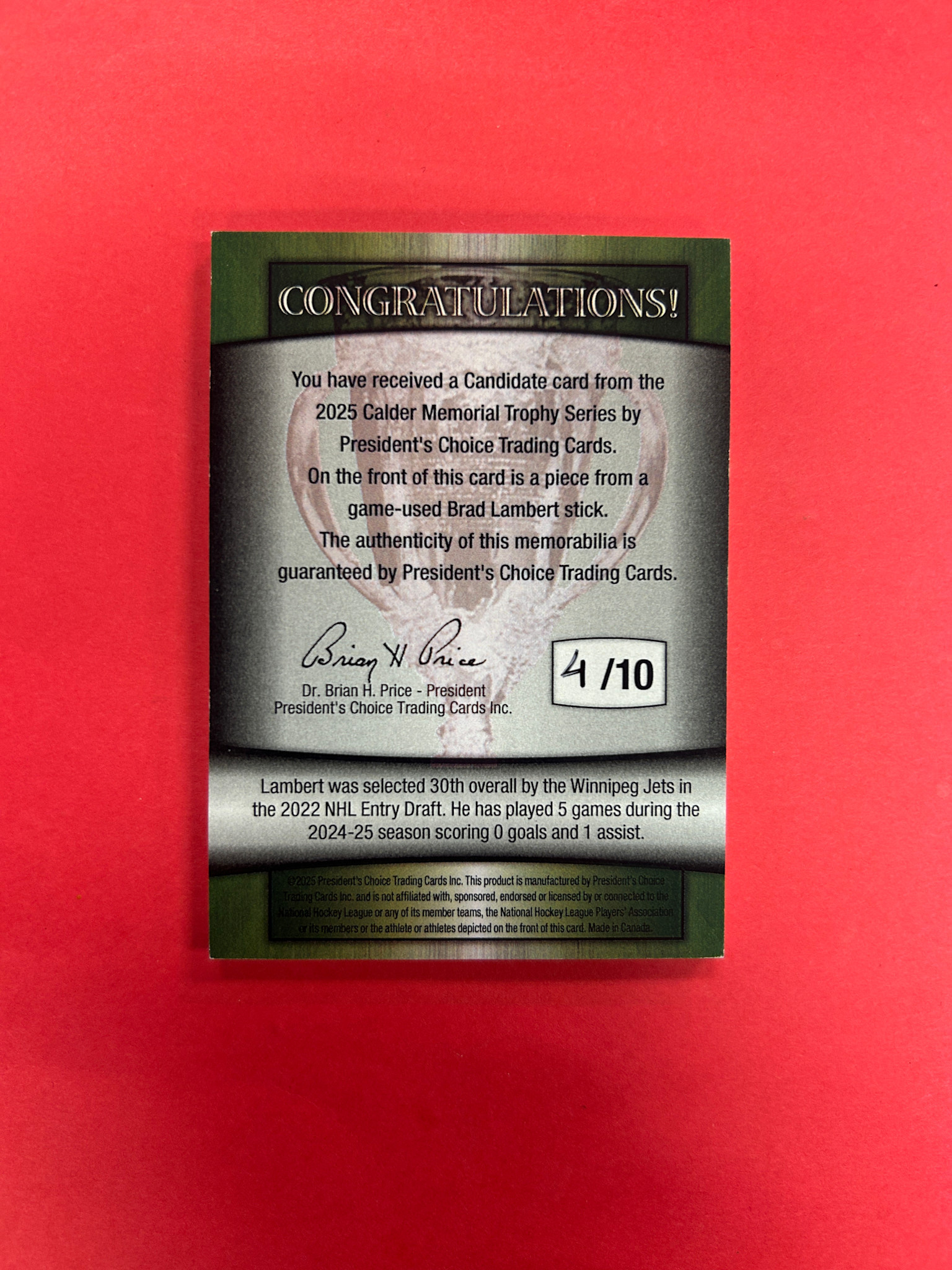 2025 PRESIDENTS CHOICE BRAD LAMBERT ROOKIE GAME USED STICK /10
