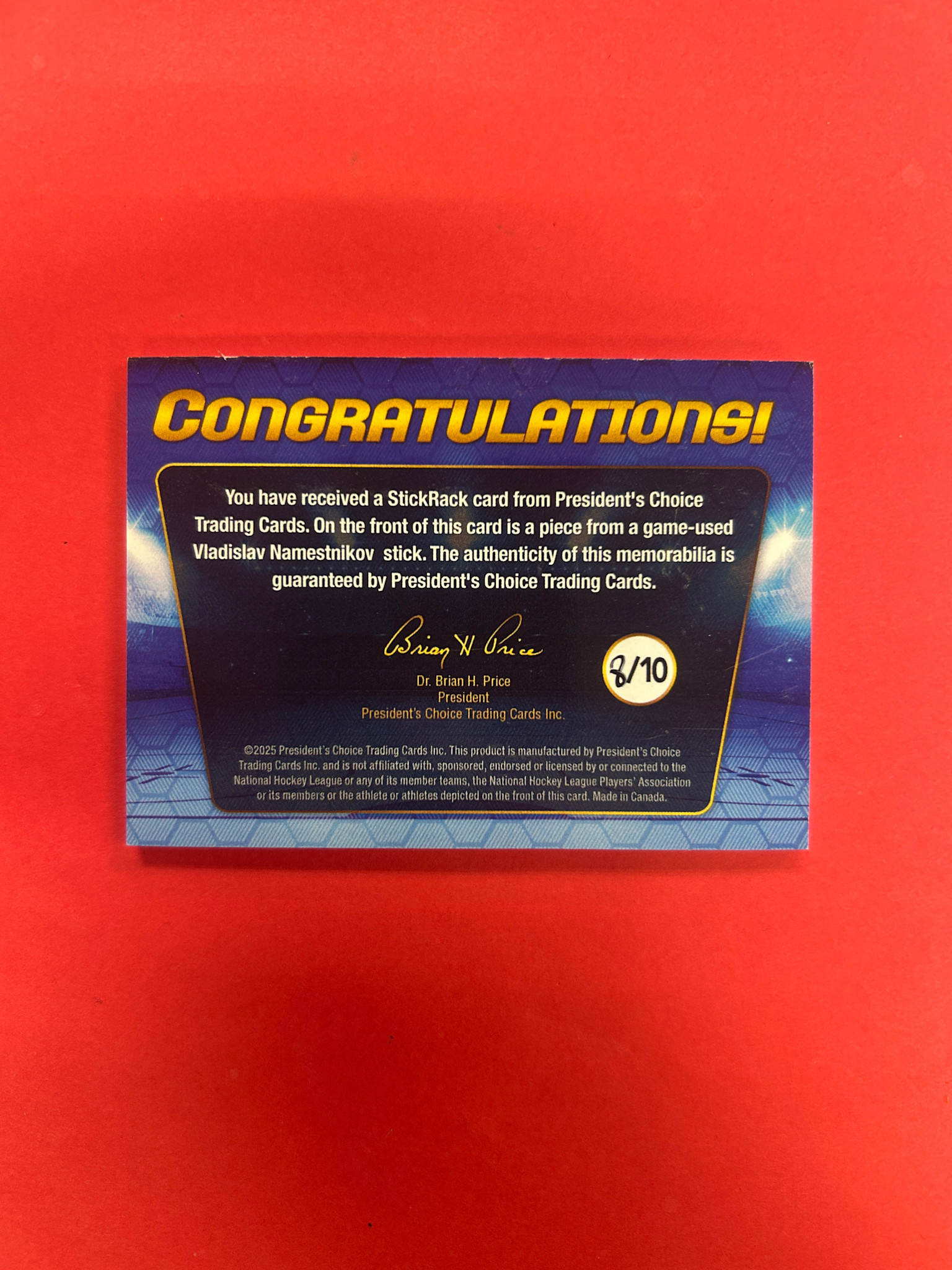 2025 PRESIDENTS CHOICE VLADISLAV NAMESTNIKOV STICK RACK /10