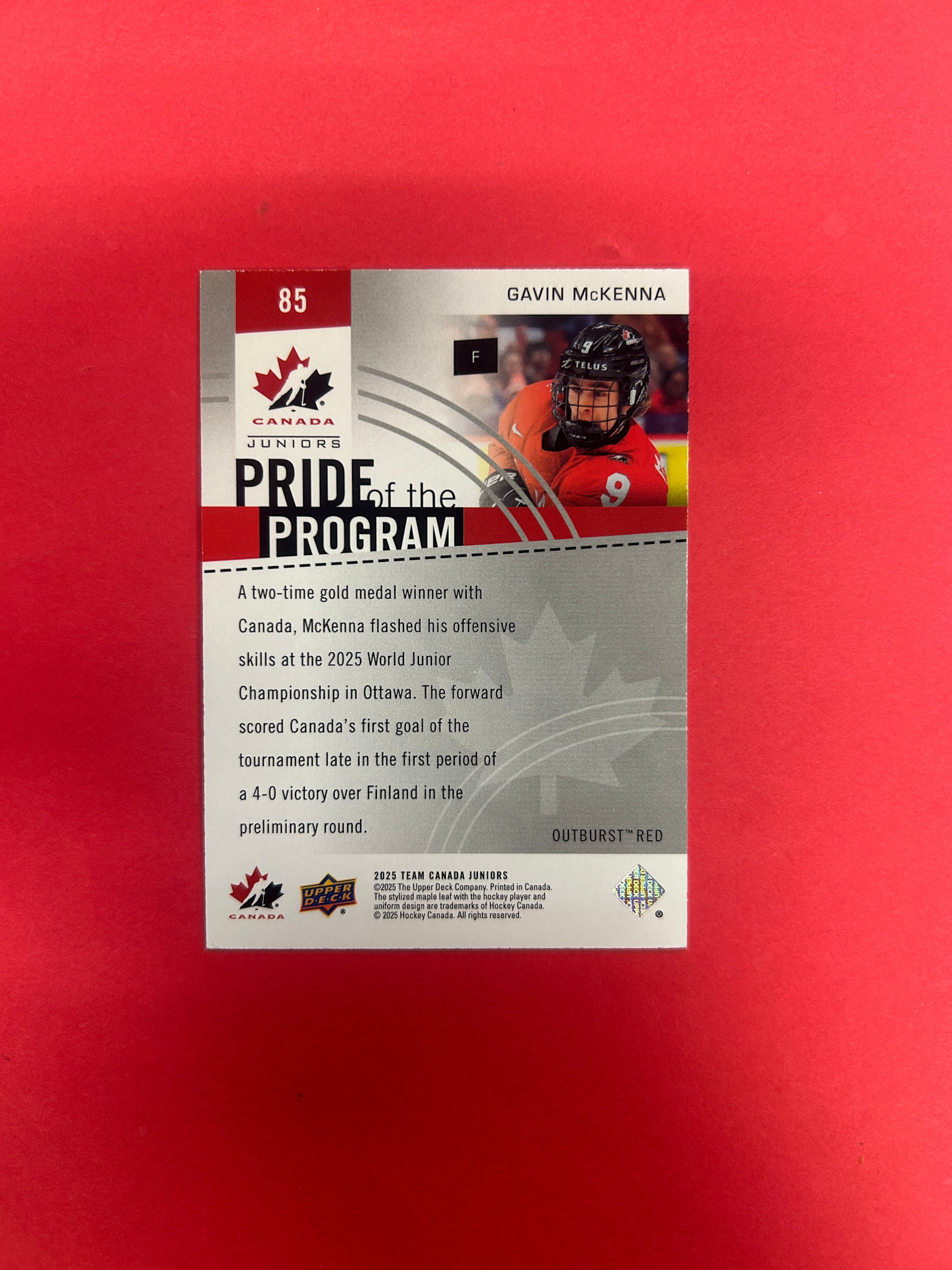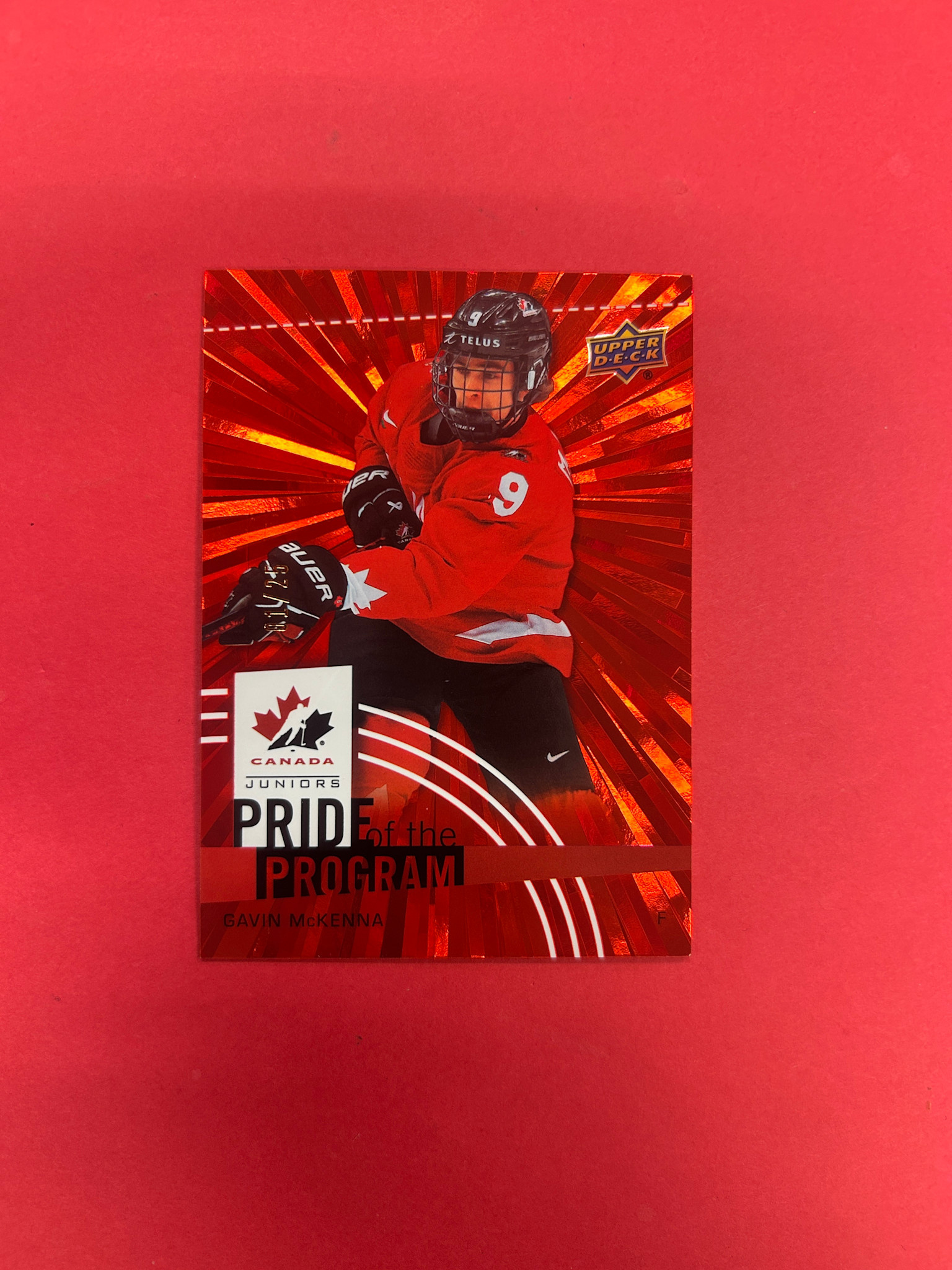 2025 UPPER DECK TEAM CANADA GAVIN MCKENNA PRIDE OF THE PROGRAM RED OUTBURST /25