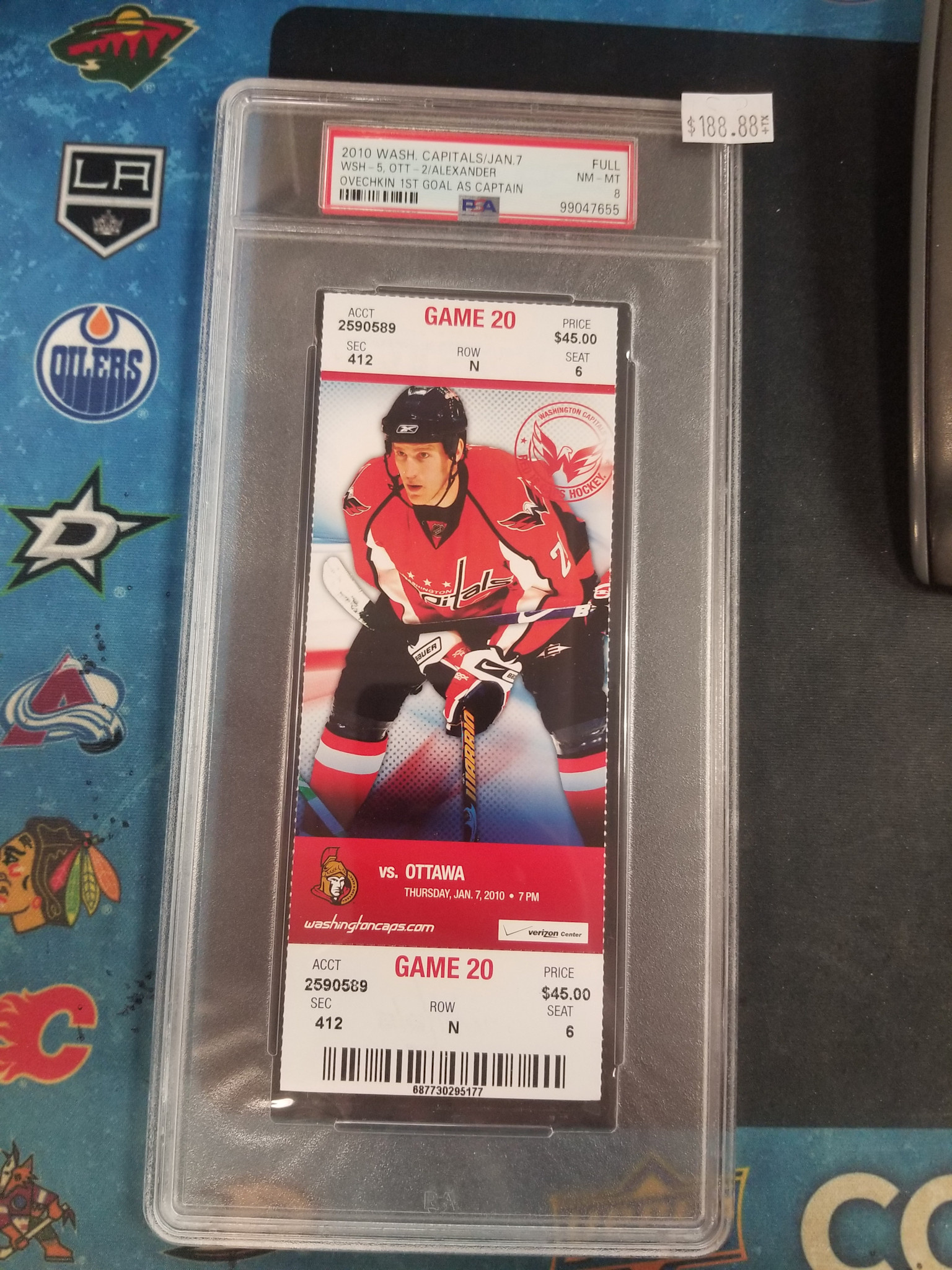 ALEX OVECHKIN 1ST GOAL AS CAPTAIN GRADED TICKET STUB PSA 8 CAPITALS