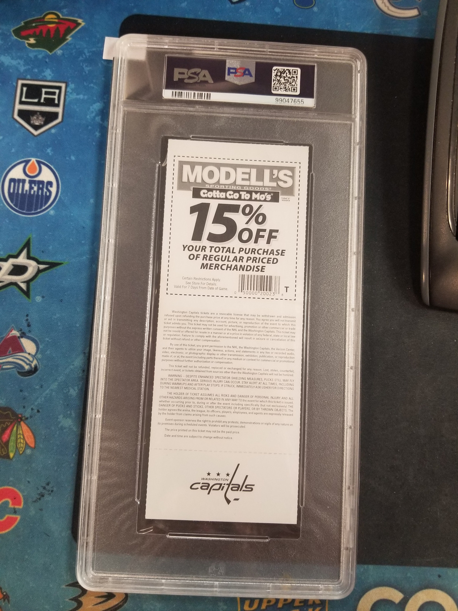 This is it! ALEX OVECHKIN 1ST GOAL AS CAPTAIN GRADED TICKET STUB PSA 8 CAPITALS