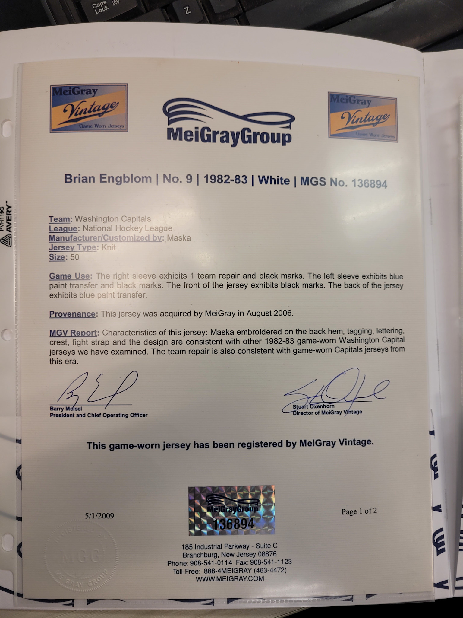 This is it! BRIAN ENGBLOM GAME-USED CAPITALS JERSEY FROM 1982-83 MEIGREY C.O.A.