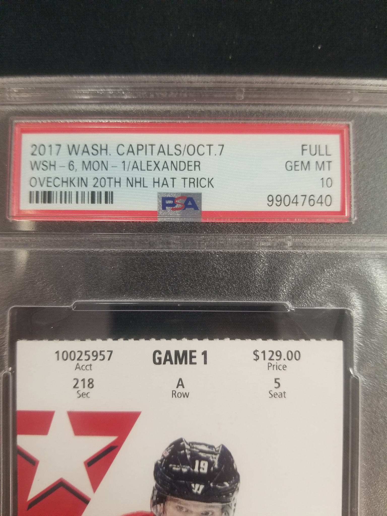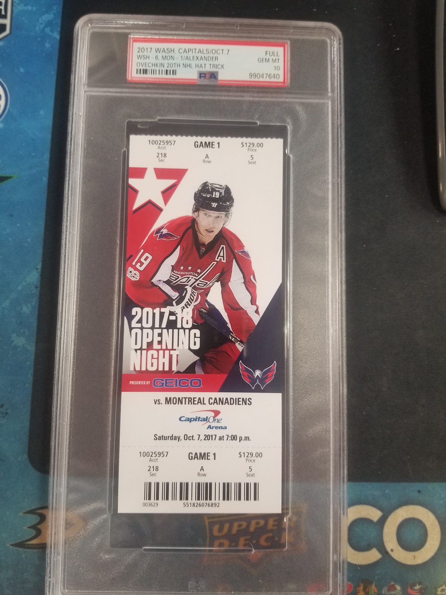 OVECHKIN 20th HAT TRICK GRADED TICKET STUB PSA 10 CAPITALS CANADIENS 2017 OCT.7