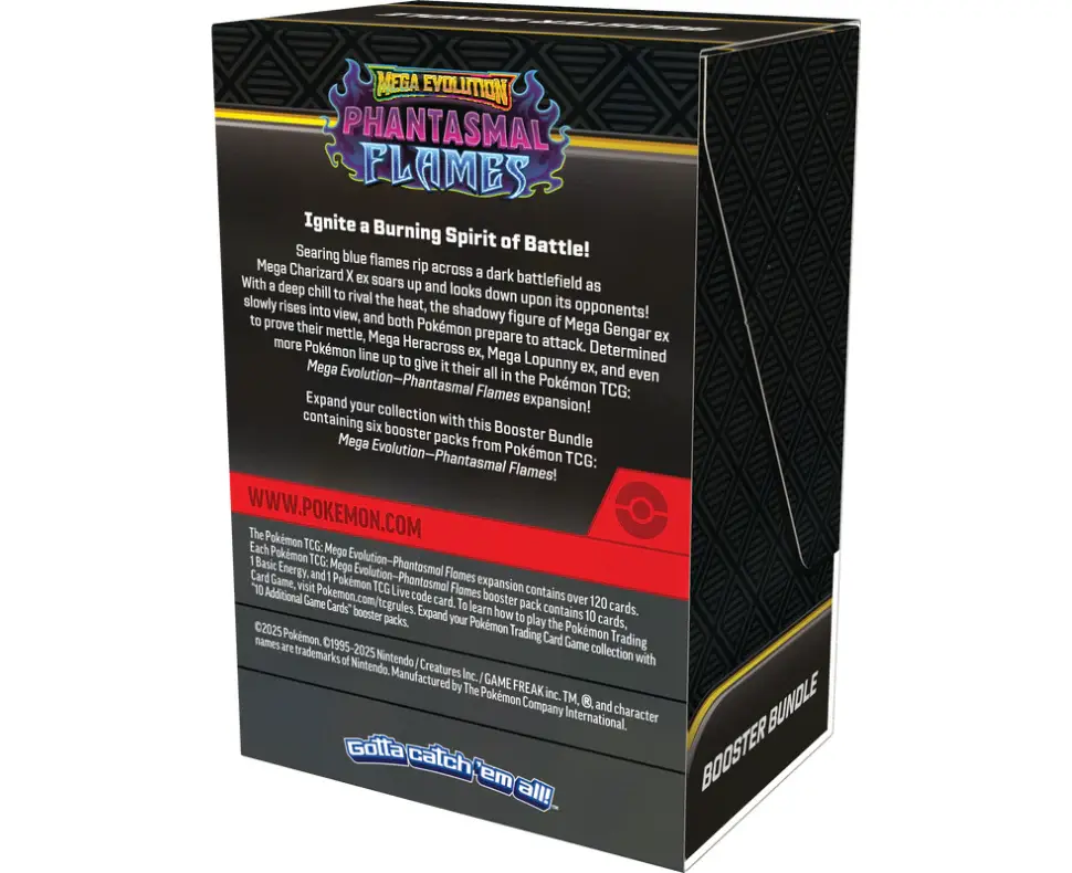 Expand your collection with this Booster Bundle containing six booster packs from Pokémon TCG: Mega Evolution—Phantasmal Flames!