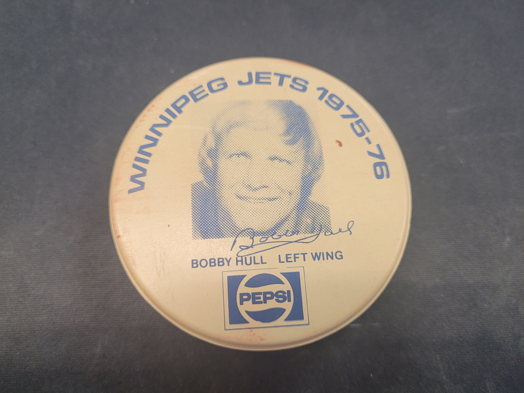 VINTAGE WINNIPEG JETS PUCK 1975-76 BOBBY HULL PEPSI
