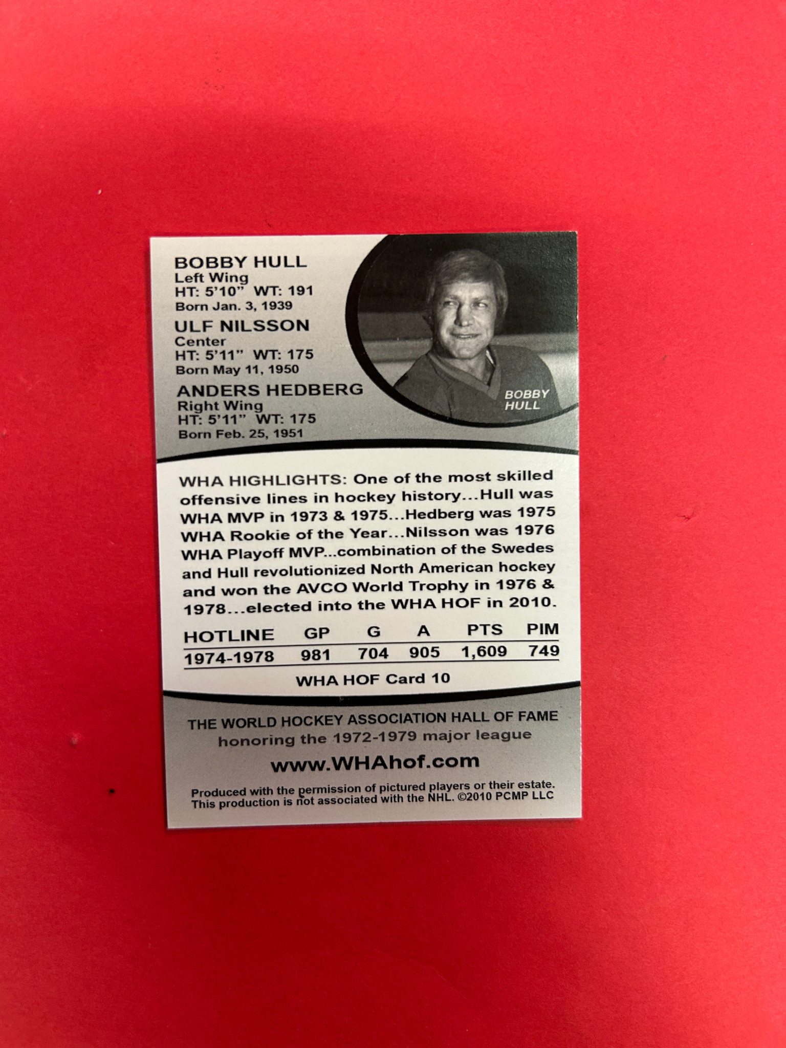 WHA WINNIPEG HOTLINE ULF NILSSON BOBBY HULL AUTOGRAPHED CARD